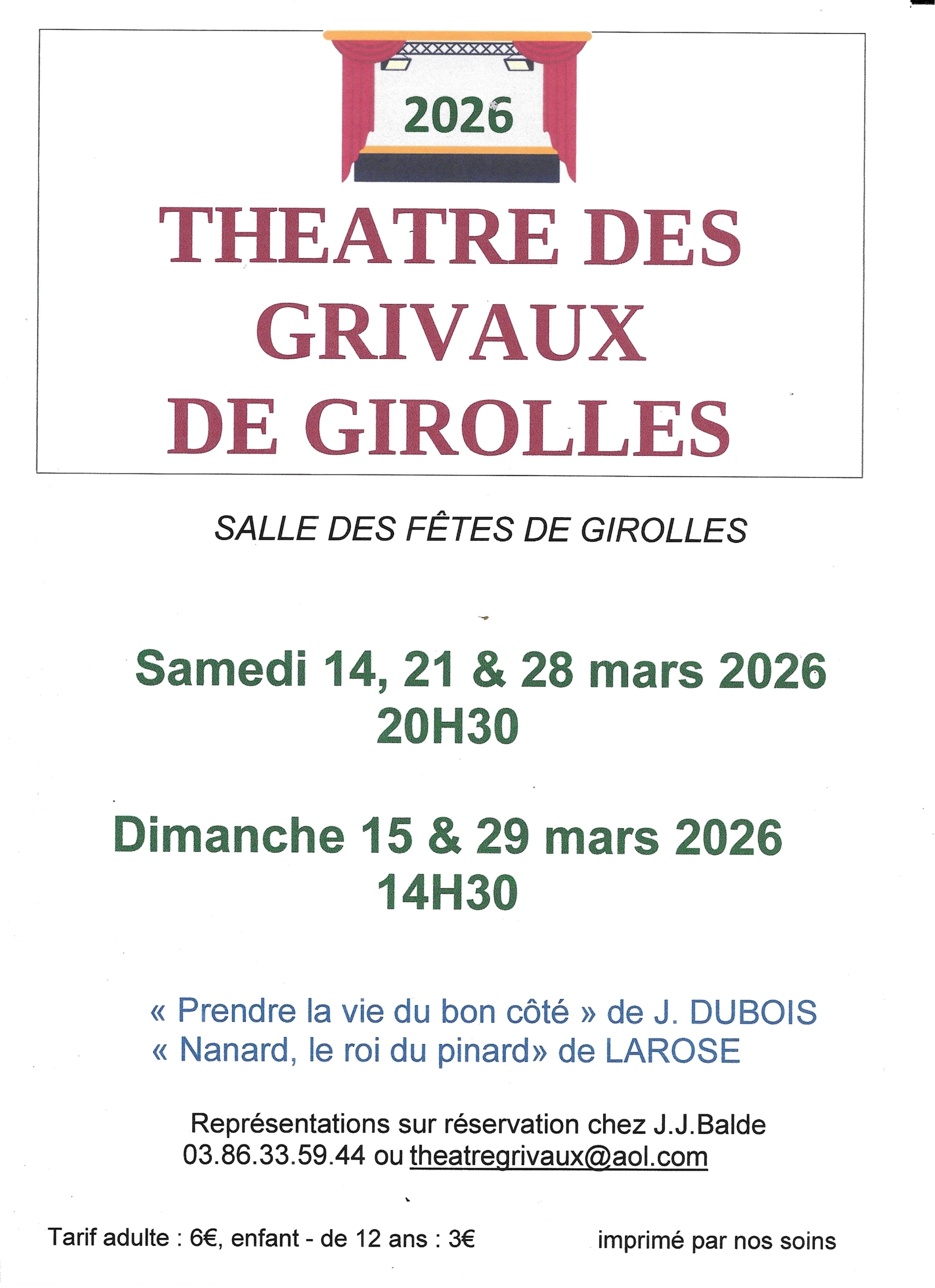 Jeannot BALDE au 03 86 33 59 44 ou theatregrivaux@aol.com